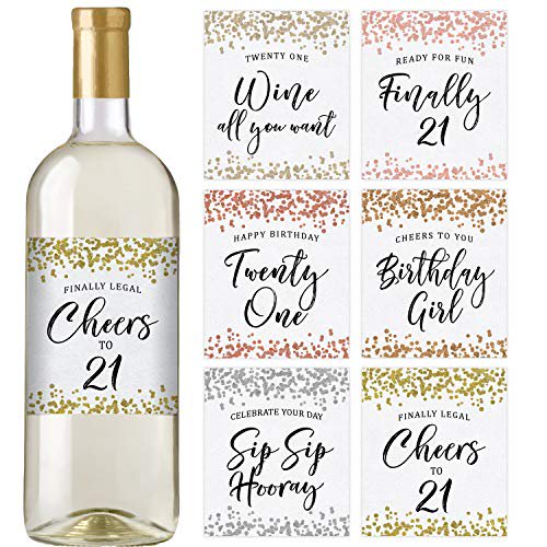 21st Birthday Wine Labels, Set of 6 Waterproof Labels, Birthday Gifts For Her, 21st Birthday Party Decorations, Ideas and Supplies